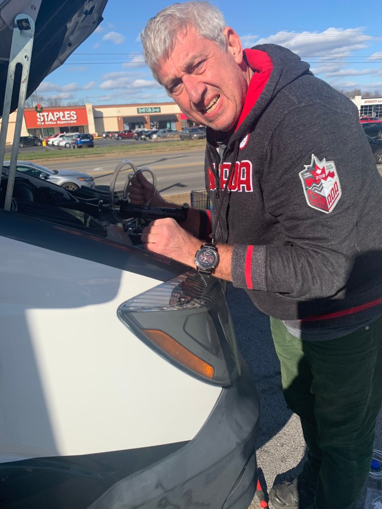 Toutes les tentatives ont échoué. Nous sommes restés coincés dans le parking du concessionnaire et nous y serons jusqu’à minimalement demain milieu d’avant-midi. Fait divers ou d’hiver (fait tellement frette). Les gens viennent en voiture faire le tour du parking pour regarder les Mercedes. Belle activité du dimanche 🙂 Malgré la situation, on tente de trouver du réconfort dans ce que l’on fait. J’ai fait un rôti de bœuf et Jean-François a fait son pain. On a pris une marche jusqu’au centre commercial de Franklin. Les gens font des achats pour Noël. Nous on ne se sent pas tellement dans l’esprit des fêtes. Jean-François a aussi fait le tour du stationnement, cherchant désespérément une prise de courant. Nada. Cependant, il a traficoté l’eau du concessionnaire et a pu remplir le réservoir de Gérard. On manquera pas d’eau. Connaissez-vous l’expression du vendeur: “J’ai des bonnes nouvelles”. Non, vous ne connaissez pas?. Imaginez la scène, vous êtes en train de magasiner des électroménagers (ou n’importe quoi d’autre) et la facture est salée. Vous demandez au vendeur:”Vous pouvez pas faire mieux? »Le vendeur répond: “Attendez je vais voir mon gérant”. Pendant ce temps, les acheteurs poireautent et attendent avec impatience le “deal du siècle”. Le vendeur revient et vous dit de pas trop loin, mais avant d’être assis à son bureau: “J’ai des bonnes nouvelles” et là, le vendeur te déballe la bonne nouvelle en question qui est une réduction ridicule. C’est devenu notre “running gag”. Chaque fois que nous sommes devant une situation ridiculement peu significative, on se lance: “J’ai des bonnes nouvelles!! Jean-François est tombé sur Steve, le gérant de service du garage MB et est revenu avec un : “J’ai des bonnes nouvelles”. Problème expliqué, on sera prioritaire demain matin. Je suis toujours un peu sceptique dans ce genre de situation, on verra bien à l’aube si la bonne nouvelle était vraiment une bonne nouvelle.