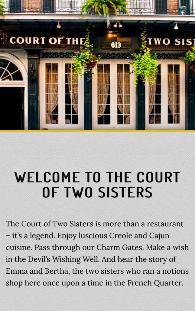 On ira au resto le 23 décembre pour fêter le réveillon de Noël, fêter avant les autres c’est toujours mieux. Une table est réservée au restaurant, The court of Two sisters.